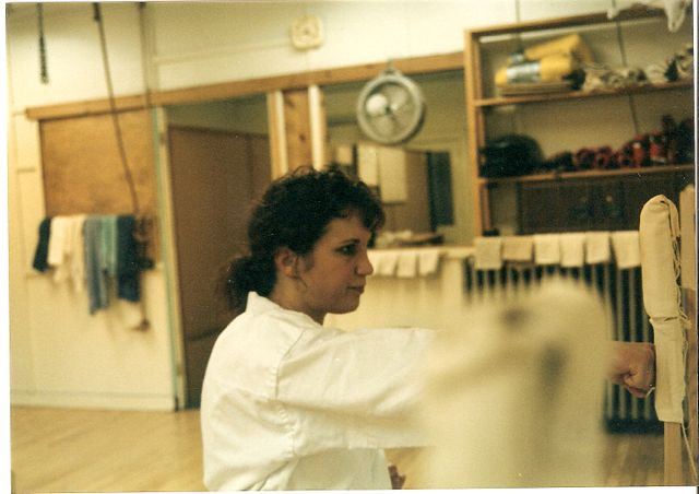 A lower makiwara pad had to be installed for Jeanne-Marie, our shortest member.