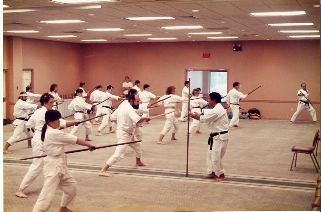 Thw WVU Karate Club studies the Bo with Demura-Sensei