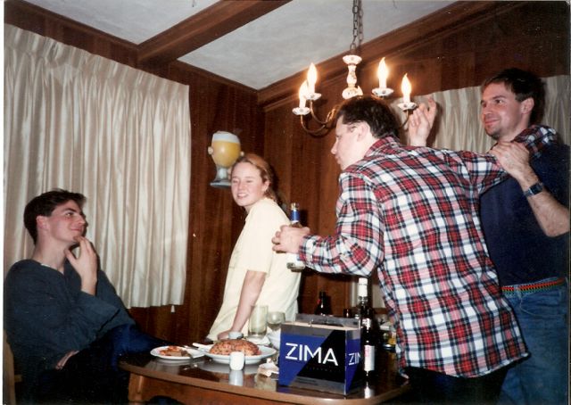 Note the giant-hand-holding-beer-mug on the wall, which signified a dojo party.