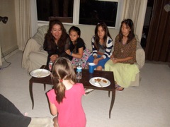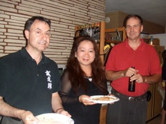 Mike Breiding aims his chopsticks at some of Eric McLaughlin’s prepared Asian delectables.